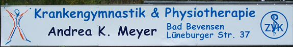 Andrea K. Meyer bewirbt ihre Krankengymnastik- und Physiotherapiepraxis in Bad Bevensen nun auch auf einer Werbebande. Andrea K. Meyers Bande ist neben dem von der Hauptrtribüne aus rechten Tor installiert. Sie ist bereits seit mehereren Jahren Werbepartnerin in unserer Stadionzeitung.