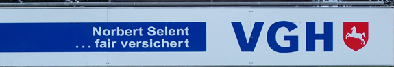 Gegenüber der Haupttribüne befindet sich die Bande der VGH Versicherung. Norbert Selent hat den alten Platz seines Vorgängers Gerhard Schwake übernommen und möchte die traditionell gute Zusammenarbeit zwischen dem SVE und der VGH fortsetzen.