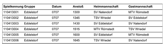Seit dem letzten Sonntag sind unsere Jungs wieder im Training. Eine erste Überprüfung der Frühform findet schon an diesem Samstag, ab 13:00 Uhr auf dem heimischen Königskamp statt. Eine von drei Vorrunden des neuen Samtgemeindepokals findet in Eddelstorf statt. Es treten an der TSV Wriedel, der SV Natendorf und unsere Turnfreunde aus Römstedt. Komplettiert wird das Viererfeld durch uns. Wir freuen uns auf schönes Wetter und viele Zuschauer! |