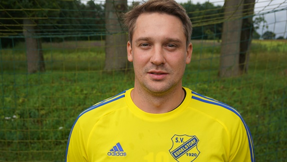 Heute möchten wir Euch Sven Poplat präsentieren. Der fast 30jährige schnupperte vor anderthalb Jahren schon einmal kurz Königskamp-Luft. Das 1:1 gegen Suhlendorf am 21.2.16 war aber zugleich sein vorläufig letztes Spiel in gelb-blau. Nun machen wir gemeinsam einen neuen Anlauf und wie wichtig Sven für uns werden könnte, zeigte er bereits in Ansätzen am letzten Sonntag in Emmendorf. Er ist sehr ballsicher, technisch versiert und hat einen starken Abschluss. Als Schwäche sieht er selbst sein Kopfballspiel. Wir hoffen darauf, dass Sven sich bei uns wohlfühlt und ein paar Jahre für uns die Stiefel bschnürt. Bisher war er aktiv für die Vereine LSK, TuS Erbstorf, TSV Adendorf, TSV Bienenbüttel, Vastorfer SK, Türkspor, VfL Lüneburg und VfB Goseburg. |