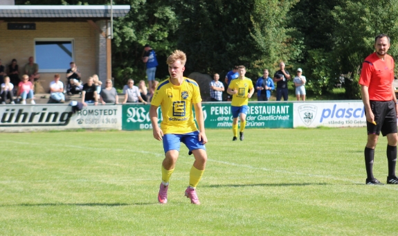 Mit einer im Vergleich zum ersten Saisonspiel deutlich veränderten Startelf, trafen wir auswärts auf die FSG Südkreis. Unsere Mittelfeldachse um Robin Wanke und Julian Hänel kehrte zurück, Marcel Kahlmann ersetzte den angeschlagenen Christof Gatzka in der Defensive. Die Rahmenbedingungen passten. Sommerliche Temperaturen und viele Zuschauer, darunter einige Eddelstorfer Fans, die den weiten Weg nach Schnega angetreten waren.