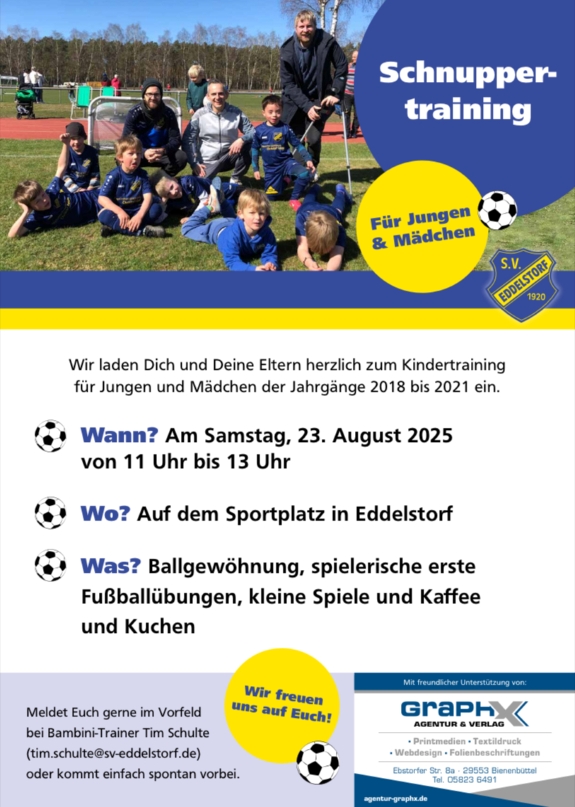 20.08.2025 – Samstag Schnuppertraining für Kinder der Jahrgänge 2018 bis 2021!