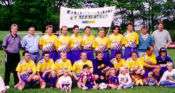Oben v. links: Trainer Michael Buchholz, Betreuer Uwe Rogsch, Michael Meyer, Andreas Tippe, Reinhard Körner,