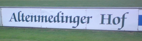 Erneut können wir uns über einen neuen Bandenpartner am Königskamp freuen. "Neu" trifft in diesem Fall allerdings nicht so wirklich zu, denn der neue Pächter des Altenmedinger Hofes, Ronald Portner, hat die einige Zeit brachliegende Bande wieder reaktiviert, weil sie noch sehr gut in Schuss ist. |