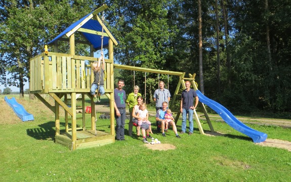 Dank der großzügigen Unterstützung durch die Volksbank Uelzen-Salzwedel (und der Leiterin der Filiale in Altenmedingen, Petra Sprenger) konnte nun ein neues Spielgerät für Kinder auf dem Königskamp eingeweiht werden.
