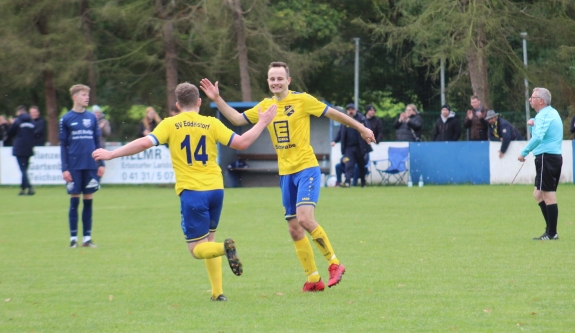 In der 2. Halbzeit war es ein sehr ausgeglichenes Spiel, wobei wir insgesamt die besseren Chancen hatten. Beim 2:3 hatten wir dann allerdings das Glück der Tüchtigen. In der 48. Minute verunglückte Thomas Meyer eine Flanke und die senkte sich unhaltbar ins lange Eck. Das kam unserem Spiel entgegen. Leider versäumten wir es zunächst, die Konter gut bis zum Ende auszuspielen. Das passierte dann erst in der 66. Minute, als Maximilian von der Ohe aus kurzer Distanz zum 2:4 traf. Das war sein erstes Pflichtspieltor für den SVE. Danach hatte man das Gefühl, dass die Kräfte bei uns etwas schwanden, was bei einigen angeschlagenen Spielern nicht unerwartet kam. In der 75. Minute war die Partie dann wieder offen. Einen Schuss aus der Distanz wehrte Christof Gatzka etwas unglücklich ab direkt vor die Füße von Steffen Börmann, der den Anschlusstreffer erzielte.